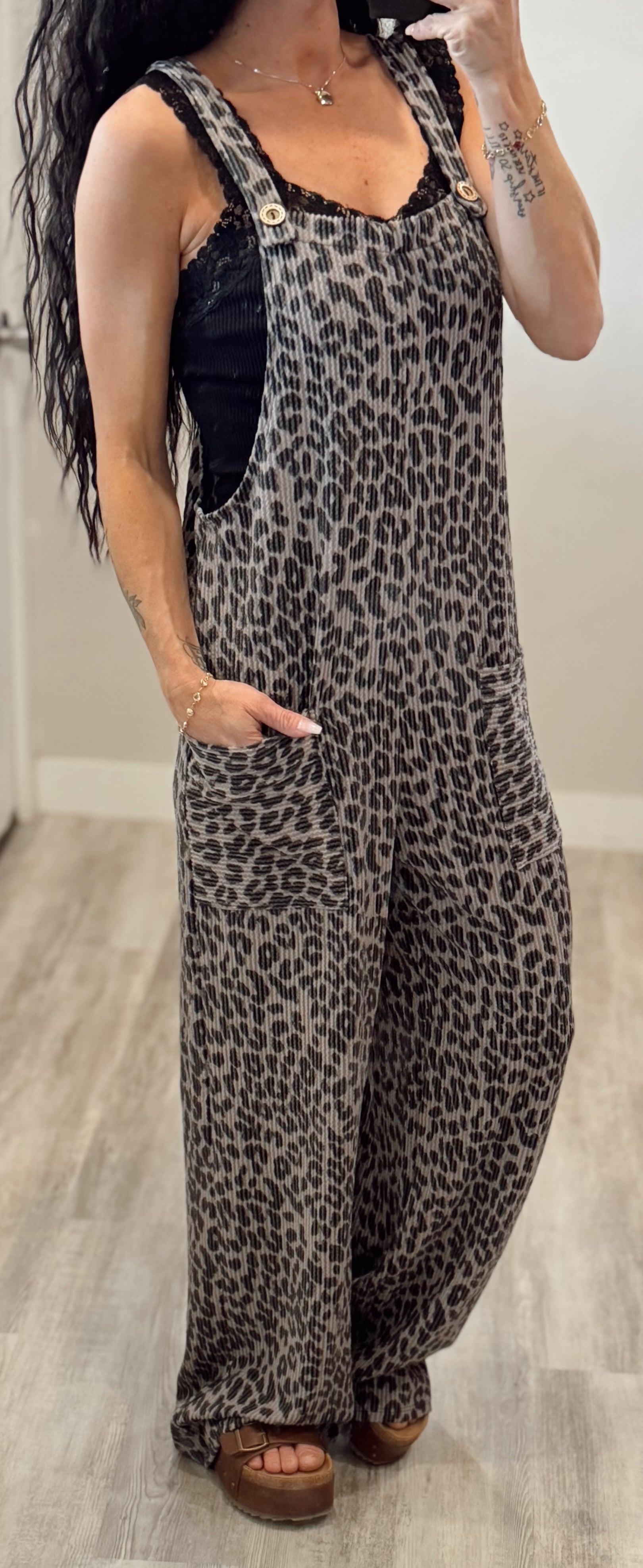 SoftThe Cocoa Leopard Jumpsuit is your new go-to for comfort and style. Made from a soft, stretchy ribbed fabric, it offers a relaxed fit with a wide casual leg, perfect for all-day wear. Dress it up or down effortlessly for any occasion!