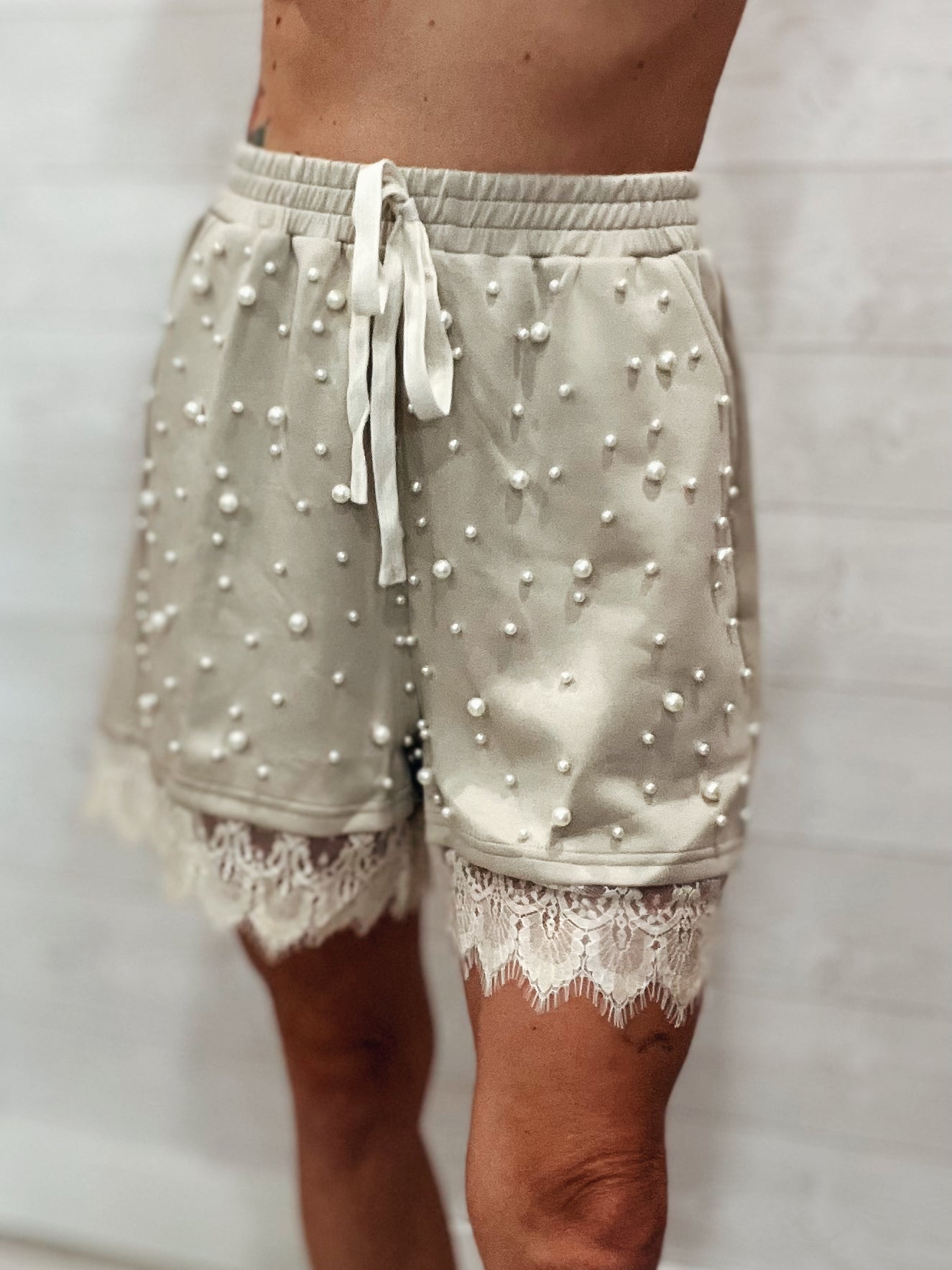 The Pearl Lace Trim Shorts combine a roomy fit with a stretchy elastic drawstring waistband for ultimate comfort and adjustability. Designed with a delicate lace trim, these shorts add a feminine touch while ensuring a secure, personalized fit. Perfect for relaxing or casual wear, they offer both style and ease in one versatile piece.