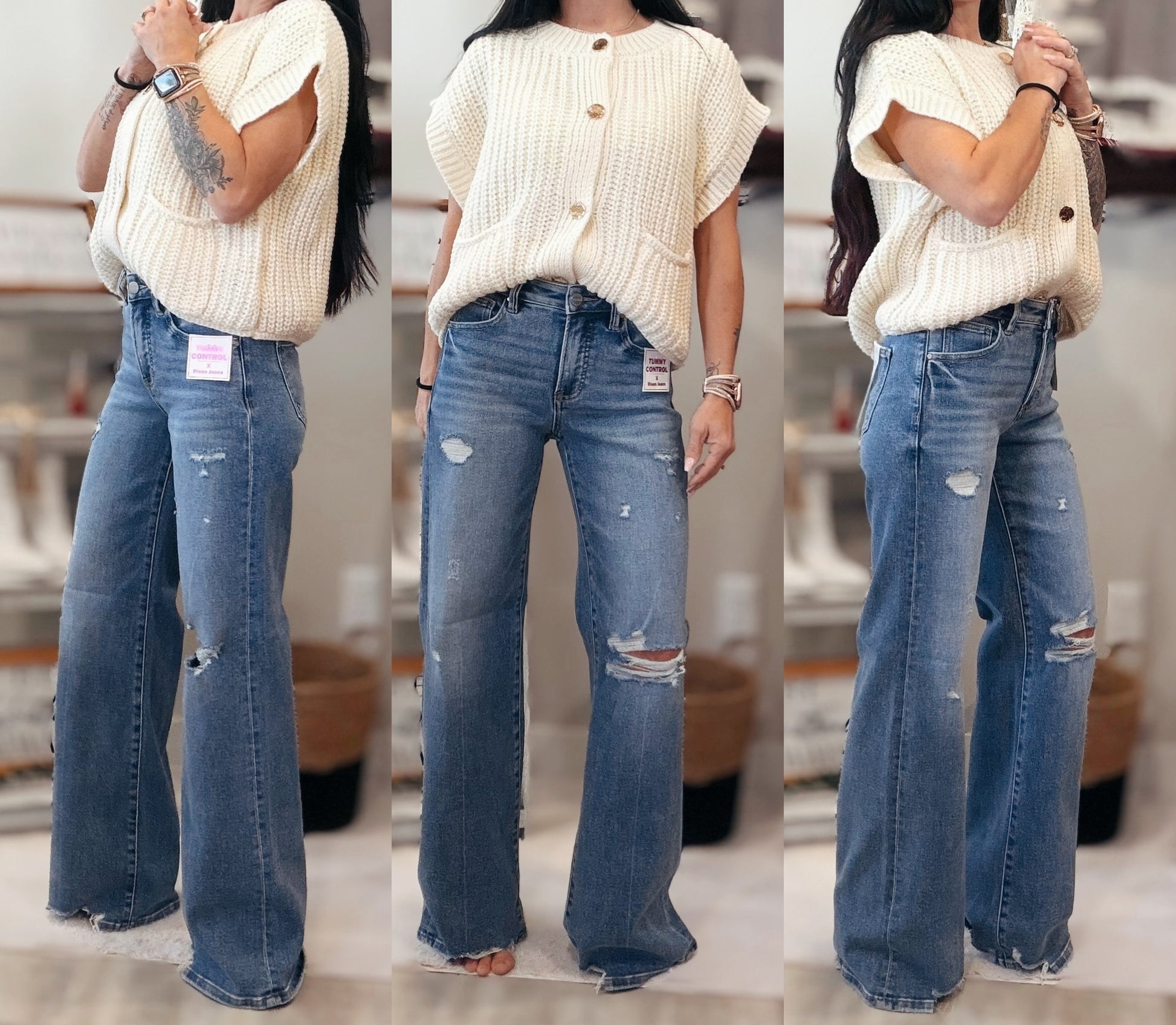 These tummy control wide jeans blend effortless style with a flattering fit. Featuring a 10" rise and a 32" inseam for size 3/26, their stretchy fabric offers comfortable shaping and unrestricted movement. Ideal for those seeking both elegance and ease in their wardrobe, these jeans elevate everyday looks with a sophisticated touch.